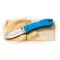 Couteau Ka-bar Dozier Blue Folding Hunter pliant - Longueur fermé 10.79cm - Longueur ouvert 18.41cm - Longueur de lame 7.62cm - Lame en acier AUS-8 - Dureté 56-58HRC - Lame de type drop point plain edge finition satin - Affutage hollow - Epaisseur de lame 2.79mm - Plaquettes du manche en zytel blue - Ouverture d'une main avec le thumb - Système de sécurité lockback - Clip de poche - Designed by Bob Dozier.