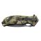 Couteau pliable avec impression camo orange sur le manche ergonomique.