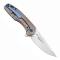 Le manche est entièrement fabriqué en Manche Titane Anodisé Bronzé, méticuleusement chanfreiné pour un confort ergonomique parfait. L'ouverture est ultra-fluide grâce au Flipper monté sur des roulements à billes en céramique. Le verrouillage est assuré par un Frame Lock robuste en titane.