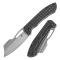 Le Kansept Cybin est un couteau de poche distinctif avec un style affirmé. Sa lame est une cleaver modifiée avec une pointe acérée et un creux sur le dos offrant une position confortable pour le pouce. Le manche est bien conçu, offrant une prise en main ferme et confortable avec un accès facile au verrouillage Frame Lock. Le manche est en titane avec une finition blackwash et un motif "frag". Ce couteau est une édition limitée et chaque couteau est numéroté. L'ouverture se fait par un trou de pouce. Un clip de poche permet le port à droite, pointe vers le haut.