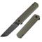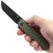 Le manche de 10,16 cm est doté de plaquettes en G-10 Vert Olive, un matériau léger et durable. L'ouverture de la lame se fait facilement via l'Extended Tang (un petit levier sur la soie de la lame). Le mécanisme est un Slip Joint, signifiant que la lame est maintenue par la tension du ressort ou du cran, sans verrouillage complet, ce qui peut faciliter le port légal dans certaines juridictions.