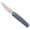 Couteau EDC Kansept Integra Blue Titanium Handle M390 Blade IKBS Framelock Clip pliant - Longueur ouvert 21.60cm - Longueur fermé 12.39cm - Longueur de lame 9.21cm - Epaisseur de lame 3mm - Lame de type drop point plain edge finition stonewash - Lame en acier M390 - Dureté 60-62HRC - Lame montée sur pivot avec roulements à billes (Ceramic ball bearing) - Plaquettes du manche Blue Anodized Titane - Ouverture d'une main avec le flipper - Système de sécurité framelock - Clip de poche