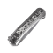 Couteau EDC Kansept Kratos Damascus Blade CarbonFiber/Titanium Handle IKBS Framelock CLip pliant - Longueur ouvert 22.22cm - Longueur fermé 12.70cm - Longueur de lame 9.52cm - Epaisseur de lame 3.81mm - Lame de type drop point plain edge - Affutage compound - Lame en acier damas - Lame montée sur pivot avec roulements à billes (ball bearing pivot) - Plaquettes en titane avec insert en Fibre de Carbone - Ouverture d'une main avec le flipper - Système de sécurité framelock - Clip de poche