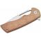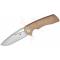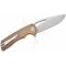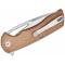 Le déploiement de la lame est remarquablement fluide grâce au système de roulements à billes en céramique. L'ouverture se fait soit par le Flipper, soit par le Thumb Hole (trou pour le pouce). Une fois ouverte, la lame est sécurisée par un mécanisme Liner Lock fiable. Le manche est équipé de plaquettes en Micarta Marron, un matériau composite durable qui développe une belle patine avec le temps, offrant une excellente prise en main.