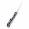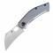 Le manche de 8,57 cm est en Titanium Anodisé Bleu, avec un fraisage interne pour réduire le poids sans compromettre la résistance. L'ouverture est exceptionnellement fluide sur roulements à billes en céramique et propose deux options : le Trou pour le Pouce ou le Flipper (Front Flipper). La lame est verrouillée par un Frame Lock solide. Le couteau mesure 14,23 cm au total.