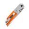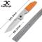 Couteau EDC Tactical Kansept Warrior Tanto Orange D2 Blade G-10 Handle IKBS Linerlock Clip pliant - Longueur ouvert 20.37cm - Longueur fermé 11.57cm - Longueur de lame 8.78cm - Epaisseur de lame 3.30mm - Lame de type tanto plain edge finition stonewash - Affutage flat - Lame en acier D2 - Dureté 59-61HRC - Lame montée sur pivot avec roulements à billes (ball-bearing pivot) - Mitres en aluminium - Platines en acier - Platines du manche en G10 Orange - Trou dans le manche pour dragonne - Ouverture d'une main avec le thumb - Système de sécurité linerlock - Clip