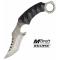 Magnifique Couteau lame fixe Karambit Mtech Xtreme Ballistic. Lame en acier 440C. Manche recouvert de 2 plaquettes de G10 noir. Livre avec son etui en Abs pouvant s'accrocher a la ceinture ou botte. Longueur Totale : 23,5cm Longueur de la lame : 10cm Poids : 226grs Couteau robuste.