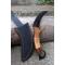 Couteau Tactical Urban Karambit à lame fixe - Longueur totale 23.5cm - Longueur de lame 11cm - Lame de type griffe - Lame en acier carbone 1055 black - Construction d'une seule pièce - Full Tang - Plaquettes du manche en bois - Mitres en bois - Anneau en bout de manche - Fabrication Artisanale - Etui Nylon