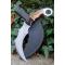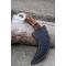 Couteau Tactical Urban Karambit à lame fixe - Longueur totale 24cm - Longueur de lame 15cm - Lame de type griffe - Lame en acier carbone 1055 satin - Construction d'une seule pièce - Full Tang - Plaquettes du manche en bois - Mitres en résine - Anneau en bout de manche - Fabrication Artisanale - Etui nylon