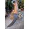 Couteau Tactical Urban Karambit à lame fixe - Longueur totale 24cm - Longueur de lame 13.5cm - Lame de type griffe - Lame en acier damas 256 couches - Construction d'une seule pièce - Full Tang - Plaquettes du manche en bois - Anneau en bout de manche - Fabrication Artisanale - Etui cuir