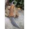 Couteau Tactical Urban Karambit à lame fixe - Longueur totale 22cm - Longueur de lame 10cm - Lame de type griffe - Lame en acier damas 256 couches - Construction d'une seule pièce - Full Tang - Plaquettes du manche en bois - Anneau en bout de manche - Fabrication Artisanale - Etui cuir permettant le port à l'horizontal