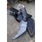 Couteau Tactical Urban Karambit à lame fixe - Longueur totale 19cm - Longueur de lame 10cm - Lame de type griffe - Lame en acier damas 256 couches - Construction d'une seule pièce - Full Tang - Plaquettes du manche en bois - Anneau en bout de manche - Fabrication Artisanale - Etui cuir permettant le port à l'horizontal
