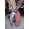 Couteau Karambit Lame Acier Damas 256 Couches Manche Bois de Rose Etui Cuir Fabr Artisanale