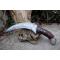 Couteau Tactical Urban Karambit à lame fixe - Longueur totale 24cm - Longueur de lame 13cm - Lame de type griffe - Lame en acier damas 256 couches - Construction d'une seule pièce - Full Tang - Plaquettes du manche en bois de rose - Anneau en bout de manche - Fabrication Artisanale - Etui cuir