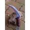 Couteau Karambit Lame Acier Damas 256 Couches Manche Bois de Rose Etui Cuir Fabr Artisanale