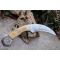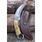 Couteau Tactical Urban Karambit à lame fixe - Longueur totale 21cm - Longueur de lame 11cm - Lame de type griffe - Lame en acier damas 256 couches - Construction d'une seule pièce - Full Tang - Plaquettes du manche en Os - Mosaic pins - Anneau en bout de manche - Fabrication Artisanale - Etui cuir
