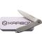 Le Karbon Knives Tidbit, conçu par le célèbre designer Ken Onion, est un couteau de poche exceptionnellement léger et compact, idéal pour un transport discret au quotidien (EDC). Sa lame de type Drop Point est fabriquée en acier CPM S35VN, un acier de coutellerie haut de gamme réputé pour sa dureté et son excellente rétention du tranchant. La lame présente une élégante finition satinée. Son manche profilé en titane gris offre une prise en main mince et confortable tout en garantissant une durabilité extrême. Le mécanisme de verrouillage Frame Lock est très solide et le pivot sur roulements à billes assure une action d'ouverture et de fermeture rapide et fluide. Le Tidbit est un couteau pliant de type flipper, ce qui le rend facile à déployer d'une seule main.