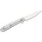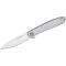 Couteau EDC Karbon Tidbit Satin N690 Blade Stainless Handles Framelock IKBS Clip pliant - Longueur ouvert 17.78cm - Longueur fermé 10.16cm - Longueur de lame 7.62cm - Epaisseur de lame 2.28mm - Lame de type drop point plain edge finition satin - Affutage flat - Lame en acier N690 - Dureté 59-60HRC - Lame montée sur pivot avec roulements à billes (Pivot Assembly: Caged Ceramic Bearings) - Manche en acier - Trou dans le manche pour dragonne - Ouverture d'une main avec le flipper - Système de sécurité framelock - Clip de poche