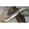 Couteau Ken Richardson Bowie Manche Elan/Turquoise Lame Acier 1085HC Etui Cuir USA KRK1410T