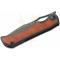 Le manche est une pièce d'orfèvrerie combinant une structure en Titane 6AL4V Noir sablé et des inserts raffinés en Bois de Rose de Panama (Panama Rosewood). Cette alliance de métal high-tech et de bois noble offre une esthétique chaleureuse et un prestige inégalé. Le système d'ouverture Front Flipper sur roulements à billes en céramique garantit une action d'une fluidité absolue, tandis que le verrouillage Liner Lock assure une sécurité totale. Léger (90 g) et doté d'un clip en titane usiné en 3D, il se porte avec une discrétion absolue.