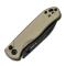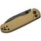 Le manche de 10,12 cm est fabriqué en aluminium anodisé de couleur Tan, un matériau à la fois léger et très durable. Un point fort de ce couteau est son mécanisme de verrouillage : le Button Liner Lock. Ce système, qui combine un bouton d'ouverture/fermeture et une doublure de liner lock, est à la fois ambidextre et permet une manipulation fluide, sécurisée et facile à une seule main. Le poids total du couteau n'est que de 85,2 grammes, ce qui en fait un EDC parfait.