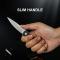 Avec une longueur fermée de 10,00 cm et une longueur totale de 17,60 cm une fois ouvert, ce couteau de seulement 64,6 grammes est conçu pour un transport discret. Un clip de poche profond et réversible permet un port ambidextre et facile à dissimuler.