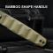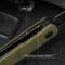 L'ouverture du couteau est fluide grâce à son mécanisme Front Flipper. La lame est sécurisée par un Liner Lock fiable, dont la barre de verrouillage est surélevée pour un déverrouillage plus doux. Le manche en G10 vert olive fraisé présente un motif de tronc de bambou et un design en forme de bambou, assurant une prise en main sûre et confortable. Les cercles fraisés sur la doublure interne représentent la section transversale d'un tube de bambou, renforçant le design inspiré de la nature.