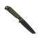 Sa lame de style tanto est fabriquée en acier AEB-L, un acier réputé pour sa capacité à conserver un tranchant extrêmement fin et pour sa grande robustesse. Elle présente une finition noire et un affûtage à creux (hollow grind) qui améliore la performance de coupe. Le manche ergonomique en G10 vert est conçu pour un confort personnalisé et offre une prise en main solide et fiable.