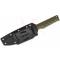 Les plaquettes en G10 Vert Olive (Olive Green) sont conçues de manière ergonomique, assurant un contrôle total et une prise en main sécurisée. L'ensemble est livré avec un étui Kydex noir robuste et fiable, essentiel pour un transport sécurisé grâce à sa rétention supérieure.
