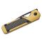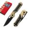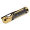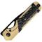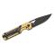 Ce couteau de poche haut de gamme est équipé d'une lame en acier CPM S45VN de 60-62 HRC, offrant une excellente tenue du tranchant et une résistance à la corrosion. Le profil Drop Point de 7,16 cm et d'une épaisseur de 3 mm assure une coupe précise et efficace. Le manche en titane doré avec incrustations en zirconium offre une prise en main confortable et un design luxueux.