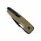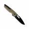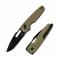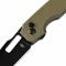 Le manche présente des plaquettes en G-10 Vert Olive avec une texture "onde d'eau" unique, inspirée par la mer, qui offre une prise en main antidérapante et une grande durabilité (résistance à l'eau et à l'usure).