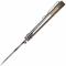 Le manche combine la noblesse du Manche Titane pour la structure de verrouillage et des plaquettes en Manche Micarta (Norplex Ultrex) de couleur grise. Ce matériau offre un grip organique qui se patine avec le temps pour une prise en main personnalisée. D'une longueur totale de 18,1 cm (10,5 cm fermé), ce couteau utilise un système Frame Lock hybride ultra-robuste. L'ouverture est d'une fluidité parfaite grâce aux roulements à billes et s'active via le Thumb Stud.