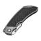 Couteau EDC Kizer Huntsmen Carbon Fiber/Titanium Handle S35VN Tanto Blade IKBS Bolster Lock Clip pliant - Longueur ouvert 22cm - Longueur fermé 12.30cm - Longueur de lame 9.70cm - Epaisseur de lame 3mm - Lame de type recurve tanto plain edge finition satin - Lame en acier S35VN - Dureté 59-61HRC - Lame montée sur pivot avec roulements à billes (Pivot System: Ball Bearings) - Manche en titane avec insert Fibre de carbone - Ouverture d'une main avec le thumb - Système de sécurité Bolster Lock - Clip de poche titane