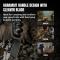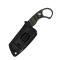 Le Kizer Little Rhino est doté d'une lame de 6,9 cm de style Hachoir en acier outil D2, avec une dureté de 60-62 HRC. Cet acier est reconnu pour sa grande résistance à l'usure et son excellente performance de coupe. Sa pleine émouture plate et sa finition black stonewash lui confèrent un aspect distinctif et une durabilité accrue, tout en masquant les rayures. Le tranchant est lisse, garantissant des coupes nettes et précises. Le manche au design inspiré du Karambit, en G10 noir et vert OD, offre une prise en main extrêmement sûre grâce à sa texture "peau de rhinocéros" et son grand anneau pour le petit doigt, augmentant le contrôle, notamment en prise inversée. Une garde de doigt sécurisée ajoute une protection supplémentaire. Avec une longueur de manche de 10,6 cm, il est conçu pour une manipulation confortable et efficace. La construction full tang assure une robustesse maximale, prolongeant la lame à travers tout le manche. Le couteau est livré avec un étui en Kydex robuste doté d'un clip de ceinture pour un transport sûr et polyvalent.