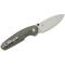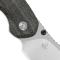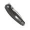 Le manche de 113,8 mm est en Micarta noir, un matériau offrant une prise en main ergonomique et un confort accru même lors d'utilisations prolongées. Sa forme incurvée s'adapte parfaitement à la paume, répartissant uniformément la pression. Le couteau utilise un Liner Lock fiable, renforcé par des dentelures (jimping) sur la barre de verrouillage pour un déverrouillage aisé. L'ouverture de la lame est fluide et rapide grâce au Thumb Stud (ergot de pouce).