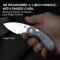 Le Manche en Blue Vortex Micarta ne se contente pas d'un esthétique unique aux nuances tourbillonnantes ; il offre surtout une prise en main sûre et texturée. Malgré sa petite taille, l'ergonomie permet une saisie confortable pour les travaux de détail. Le système de verrouillage est un Button Lock (doublé d'un liner lock pour la sécurité), garantissant une fermeture intuitive d'une seule main. Il est équipé d'un clip de poche "Deep Carry" réversible pour un transport discret.