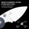 Sa Lame Acier Sandvik 14C28N de 5,11 cm arbore un profil Drop Point avec une finition Satin. Cet acier suédois est réputé pour sa finesse de grain, permettant un tranchant rasoir facile à entretenir et une excellente résistance à la corrosion. L'ouverture est facilitée par un Thumb Hole (trou de pouce) surdimensionné, monté sur roulements à billes pour une fluidité d'action exemplaire.