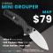 Couteau Kizer Mini Grouper Manche Fibre de Carbone Lame Acier Nitro-V Satin Button Lock Clip IKBS KIV3669A1