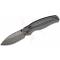 Le manche est équipé de plaquettes en Micarta Noir Norplex Ultrex, un composite haut de gamme offrant une texture texturée pour un grip infaillible. Ce modèle se distingue par son mécanisme Button Liner Lock : la sécurité d'un liner lock classique avec le confort d'un bouton poussoir pour déverrouiller la lame sans jamais mettre ses doigts sur sa trajectoire. L'ouverture est d'une fluidité extrême grâce au pivot sur roulements à billes et au Thumb Stud. Compact et léger (80 g), il dispose d'un clip de poche Deep Carry réversible.