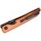 Le manche en aluminium Copper vieilli offre une prise en main confortable et une esthétique unique. Le design ergonomique et le poids équilibré du couteau en font un outil agréable à utiliser, même pour de longues périodes. Le clip de poche deep carry permet un port discret et pratique.