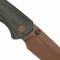 La lame de 8,85 cm est de profil Drop Point et est fabriquée en acier Nitro-V. Cet acier est apprécié pour sa facilité d'entretien, sa bonne résistance à la corrosion et sa capacité à maintenir un tranchant coupant. La dureté de l'acier Nitro-V est spécifiée entre 59 et 61 HRC, assurant un équilibre idéal entre performance de coupe et robustesse. La lame est traitée avec une finition PVD Métal Crépuscule (Sunset Metal PVD), lui conférant un aspect sombre et distinctif.