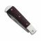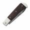Le Manche en Aluminum gris est sublimé par des inserts en Leopardwood (Bois Léopard). Ce bois exotique, aux motifs mouchetés caractéristiques, apporte une touche organique et une prise en main très agréable. Ce modèle utilise un mécanisme Slip Joint (cran forcé), offrant une fermeture non bloquante fluide et sécurisée, idéale pour une utilisation urbaine ou outdoor respectueuse des législations. Avec un poids plume de seulement 50,6 g, il offre une présence en poche minimale.