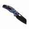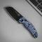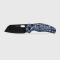 Esthétique Blue Vortex : Un manche en Micarta au design unique et ergonomique.