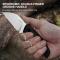 Le Manche est constitué de plaquettes en Black G10, un matériau composite quasi indestructible qui offre un grip constant quelles que soient les conditions météo. L'ergonomie signée Kornel Kiss assure une prise en main naturelle et réduit la fatigue lors d'un usage prolongé. En tant que lame fixe, le Snick est livré avec un étui Kydex noir, offrant une rétention parfaite et une grande polyvalence de port pour l'aventure outdoor.