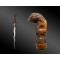 La poignée, appelée ukiran, est en bois finement sculpté et gravé pour représenter la divinité Wayang, aux cheveux longs délicatement formés.