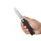 Couteau EDC Kubey Akino Black G10 Handle Sandvik 14C28N Blade IKBS Lockback Clip pliant - Longueur ouvert 17.7cm - Longueur fermé 10cm - Longueur de lame 7.7cm - Epaisseur de lame 3.0mm - Lame de type Straight Back plain edge finition Bead Blasted - Affutage Flat - Lame en acier Sandvik 14C28N - Dureté 58-60HRC - Lame montée sur pivot avec roulements à billes en céramique (Caged Ceramic Ball Bearing) - Platines en acier - Plaquettes du manche en G10 Black - Trou dans le manche pour dragonne - Ouverture d'une main - Système de sécurité Lockback - Clip de poche
