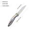 The Kubey Barracuda is a high-end knife, ideal for enthusiasts seeking a high-performing EDC with a distinctive design. Its caged ceramic ball bearings ensure fast and smooth opening. The titanium pocket clip allows for discreet and elegant carry.