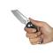 Couteau de poche pliant EDC (Everyday Carry) Kubey Dheo, conçu par Johan Jordaan. Sa lame Wharncliffe de 8 cm en acier Sandvik 14C28N avec une finition beadblast offre un excellent tranchant et une bonne résistance à la corrosion pour un usage quotidien. Son manche ergonomique en G-10 noir assure une prise en main sûre et confortable. Le verrouillage bouton ambidextre garantit une utilisation facile et sécurisée.