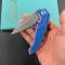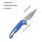 Couteau EDC Kubey RBC-1 Outdoor Blue Pink G10 Handle Bead Blast 14C28N Blade IKBS Linerlock Clip pliant - Longueur ouvert 21.0 cm - Longueur fermé 12.2 cm - Longueur de lame 8.8cm - Epaisseur de lame 3.0 mm - Lame de type Drop Point plain edge finition Beadblast - Affutage flat - Lame en acier 14C28N avec traitement Cryogenic - Dureté 60-62HRC - Lame montée sur pivot avec roulements à billes en céramique (Washers Material: Caged Ceramic Ball Bearing) - Platines en acier - Plaquettes du manche en Blue Pink G10 - Ouverture d'une main avec le flipper - Système de sécurité linerlock - Clip de poche - Poids 123grs - Designer: Sherif Manganas