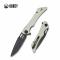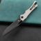 Le manche est équipé de plaquettes en G-10 Ivoire (Ivory G-10), un matériau composite en fibre de verre réputé pour sa légèreté, sa résistance et son aspect clair distinctif. Le mécanisme Liner Lock assure un verrouillage sécurisé de la lame.